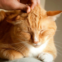 Картинка с рыжим котом, которого гладят