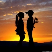 Аватар про первое свидание мальчика и девочки. Красивый силуэт влюбленных на закате. Аватарка подойдет для романтических молодых девушек, которые только недавно влюбились. Картинку можно установить для контакта, форумов, блогов, а также она отлично подойдет для скайпа. Скачать аватар мальчика и девочки.