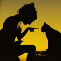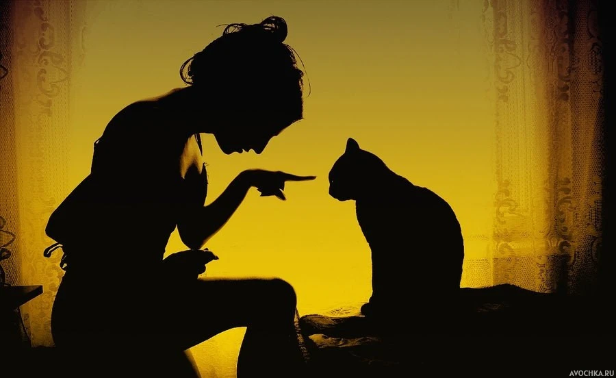 Силуэт с девушкой и кошкой
