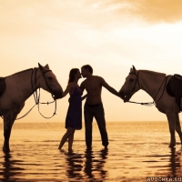 Аватарка с влюбленной парой на закате вместе с лошадями. Скачать оригинальные аватары на тему любви