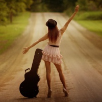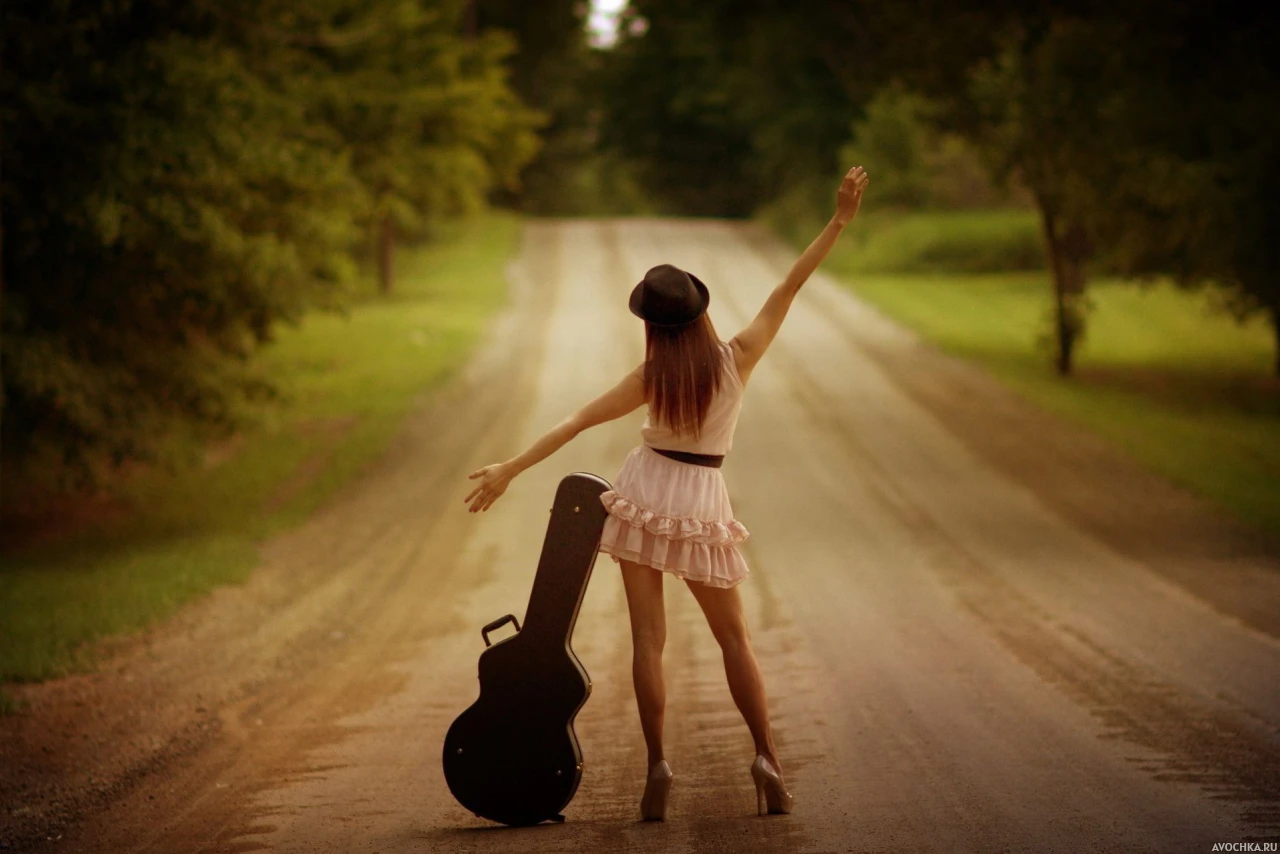Картинка с девушкой на дороге, которая стоит спиной