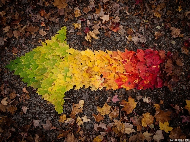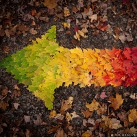 Осень - замечательная золотая пора. Один из самых ярких времен года, когда деревья, прежде чем уйти в долгий сон скидывают с себя пожелтевшие красочные листья. На картинке изображена стрела из кленовых листьев, которые указывают налево. Скачать осенний аватар с кленовыми листьями.