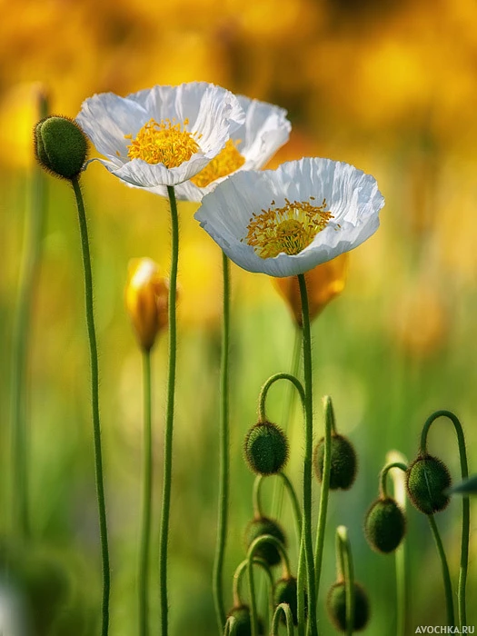 В природе существует не только красный мак, который так популярен, но и разновидность белого. Это красивый цветок с белыми лепестками, в середине он жёлтого цвета. Такие цветы выращивают как в декоративных целях, так и для получения наркотических веществ. Также белый мак используется в лечебных целях. Скачать аватарку на тему природы с красивыми белыми цветами.
